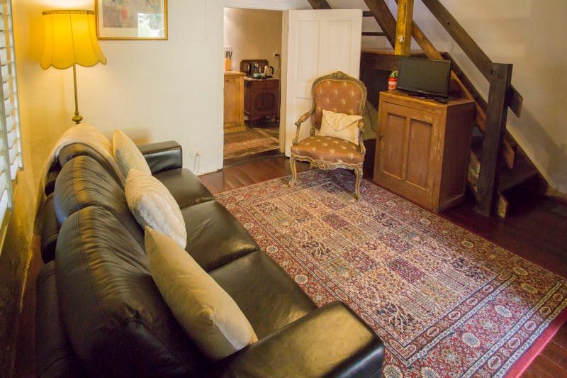 One of two beautiful Loft Suites in the heart of the magnificent gardens, Courtbarn features an upstairs loft bedroom, a private sitting room and bathroom with a beautiful free standing bath tub. The verandah has a lovely view over the gardens and fountain.